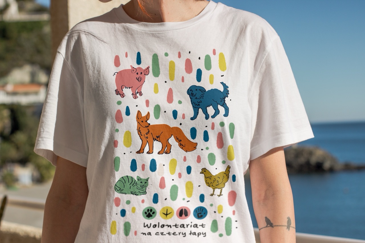 opracowanie logotypu łączącego ślady wielu zwierząt, którymi opiekuje się Viva! oraz przygotowanie ilustracji z nim powiązanych